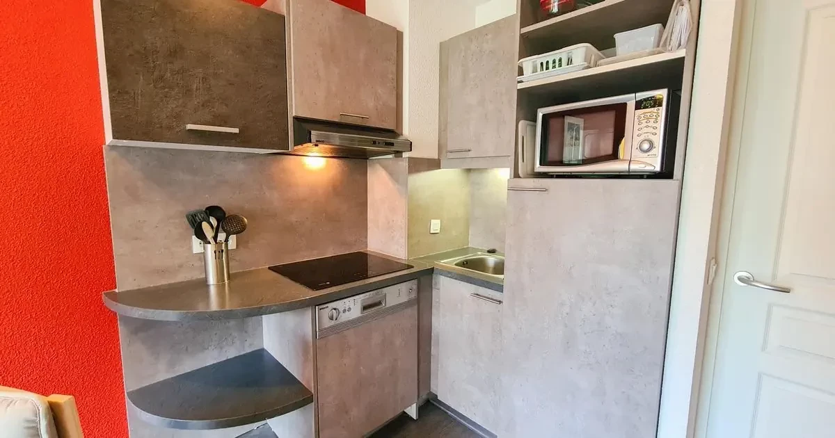 kuchnia wyposażona w lodówkę, kuchenkę, kuchenkę mikrofalową, zmywarkę do naczyń, czajnik, toster i ekspres do kawy
