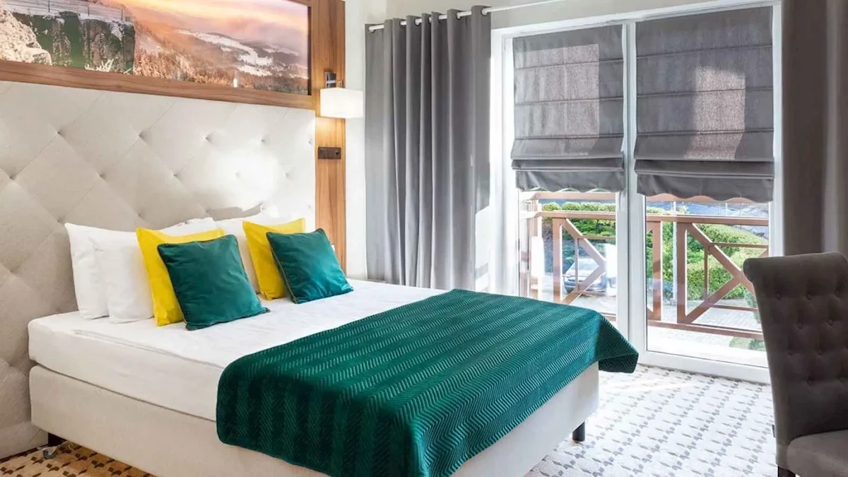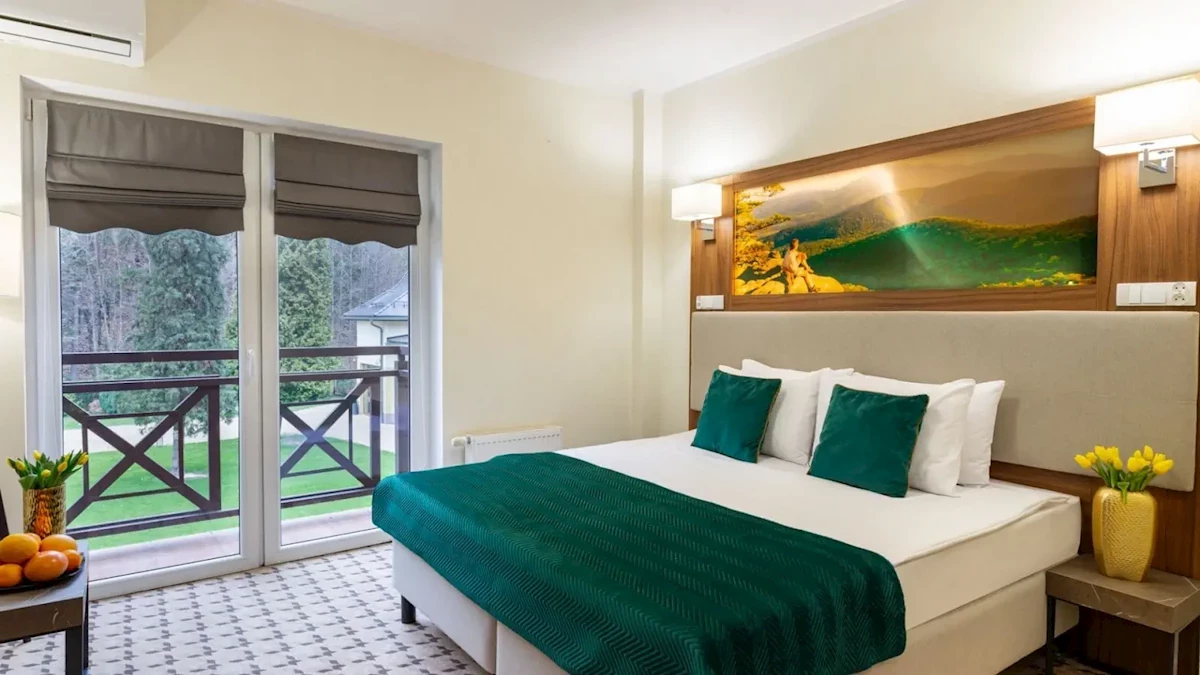 ponad 400 miejsc noclegowych w pokojach 1 os., 2 os, rodzinnych oraz apartamentach – pokoje standard (pokoje 2 osobowe z możliwością dostawki, apartamenty de Lux), pokoje classic (pokoje 2 osobowe bez możliwości dostawki oraz pokoje rodzinne dla 2 os. dorosłych oraz dzieci do lat 12) wyposażone w TV, telefon, łazienkę z prysznicem, zestaw ręczników, zestaw kosmetyków hotelowych, szlafroki, suszarkę, chłodziarkę, czajnik.Do dyspozycji Gości