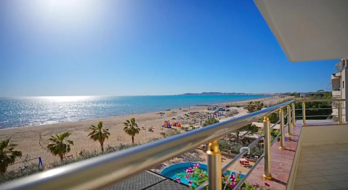 W dzielnicy hotelowej Shkembi Kavajes, ok. 8 km od centrum DURRES, najbliższe sklepy i bary ok. 100 m od hotelu; ok. 35 km od lotniska w Tiranie; przystanek autobusowy ok. 1 km od hotelu.PLAŻA