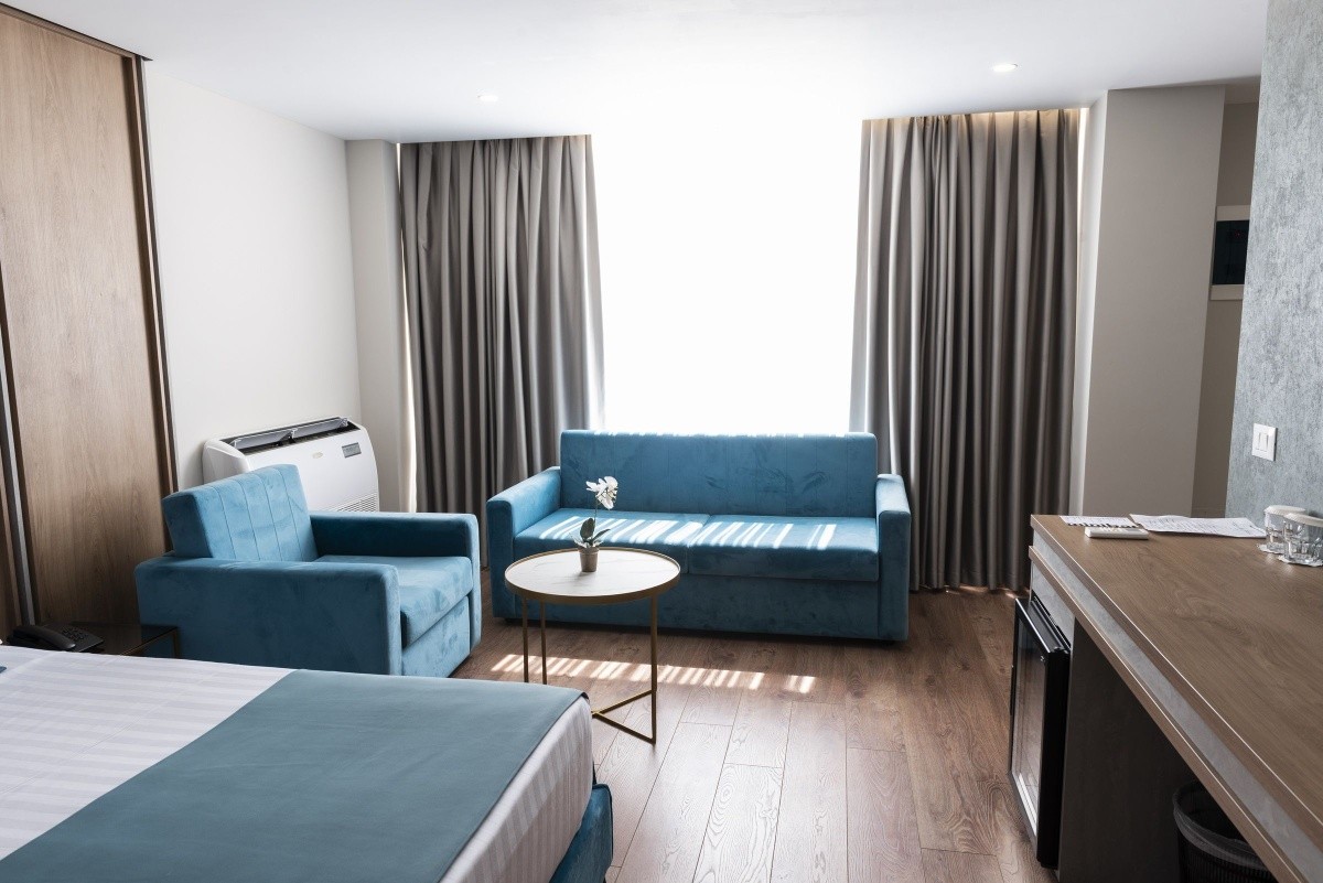 Przestronne pokoje (powierzchnia: ok. 35 m²) wyposażone są w podwójne łóżko lub dwa łóżka pojedyncze, rozkładaną sofę z możliwością spania, parkiet, łóżeczko dziecięce (za ewentualną dopłatą), ogrzewanie (sterowane centralnie), minibar (za opłatą), balkon, Internet (bezpłatnie), sejf (bezpłatnie) oraz telewizję kablową i telewizor z płaskim ekranem oraz centralnie regulowaną klimatyzację. Łazienka z prysznicem. Ręczniki zmieniane są trzy razy w tygodniu.Informacje dodatkowe (Pokoje Ekonomiczne/ Promocyjne/ Aneks/ Run Of the House):