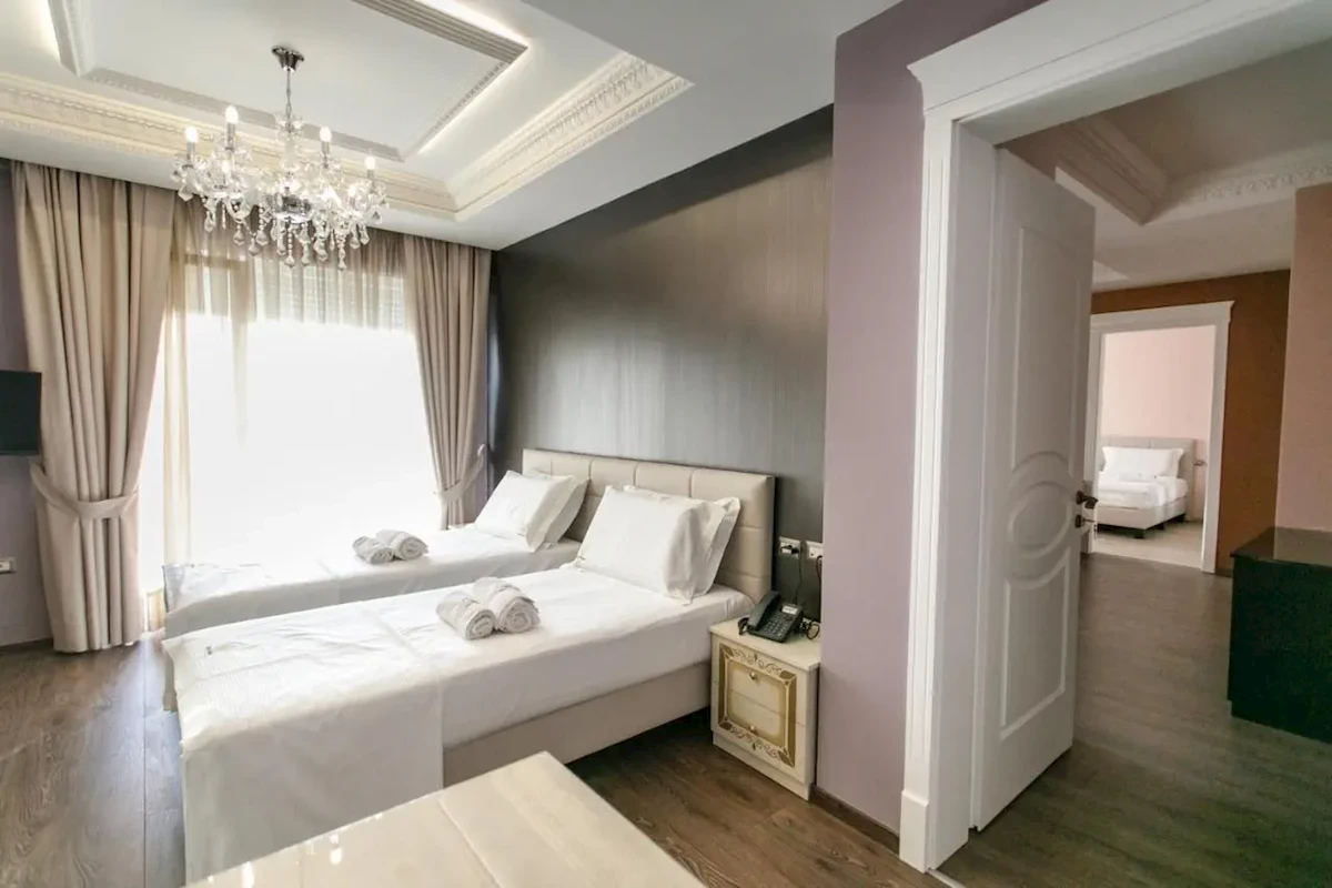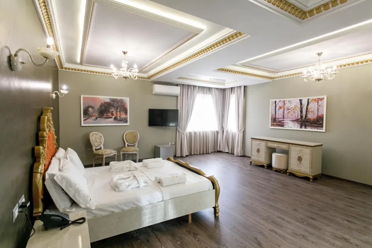Hotel Elite Palace to luksusowy obiekt na obrzeżach Tirany, oferujący eleganckie pokoje z najwyższym standardem, wyśmienitą gastronomię z międzynarodowymi daniami oraz lokalnymi specjałami, strefę relaksu z SPA, a także nowoczesne sale konferencyjne, idealne dla podróży służbowych i wypoczynku.luksusowy obiekt
