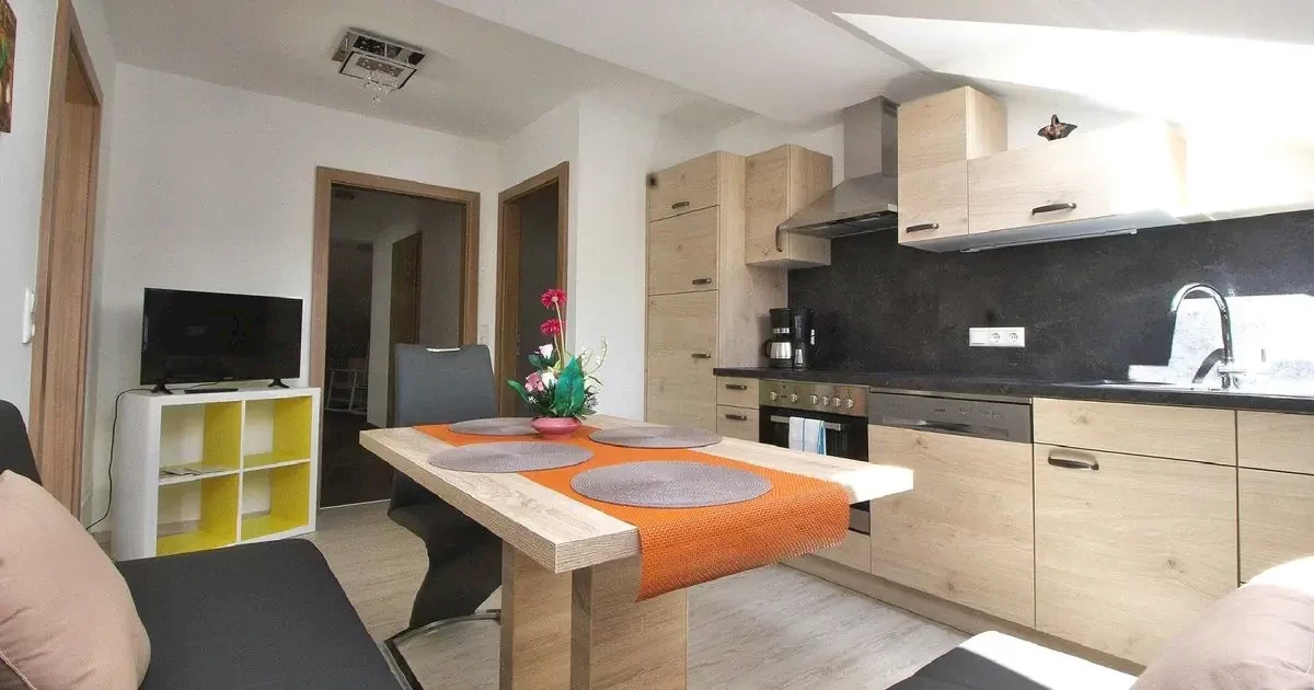 pokój dzienny: nisza kuchenna i kącik wypoczynkowy2x pokój sypialny: łóżko podwójnenisza kuchenna: piekarnik, kuchenka, ekspres do kawy, lodówka z zamrażalnikiem i czajnikłazienka: prysznic/WC i suszarka do włosówosobne WCbalkonwyposażenie: TV i Wi-FiApartament 4-osob. (ok. 63 m2, Sonnenblick), SC, A4O2