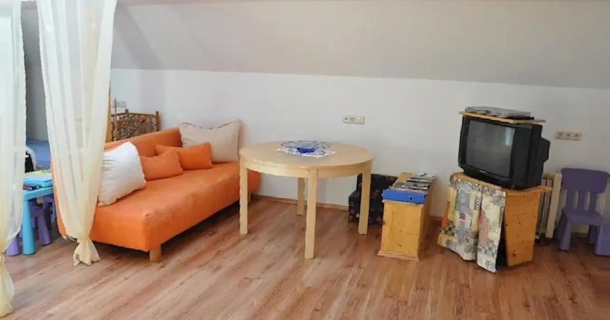 studio na poddaszupokój dzienno-sypialny z podwójną rozkładaną kanapą, oddzielone zasłoną łóżko podwójne, kominek i TVMiejscowość