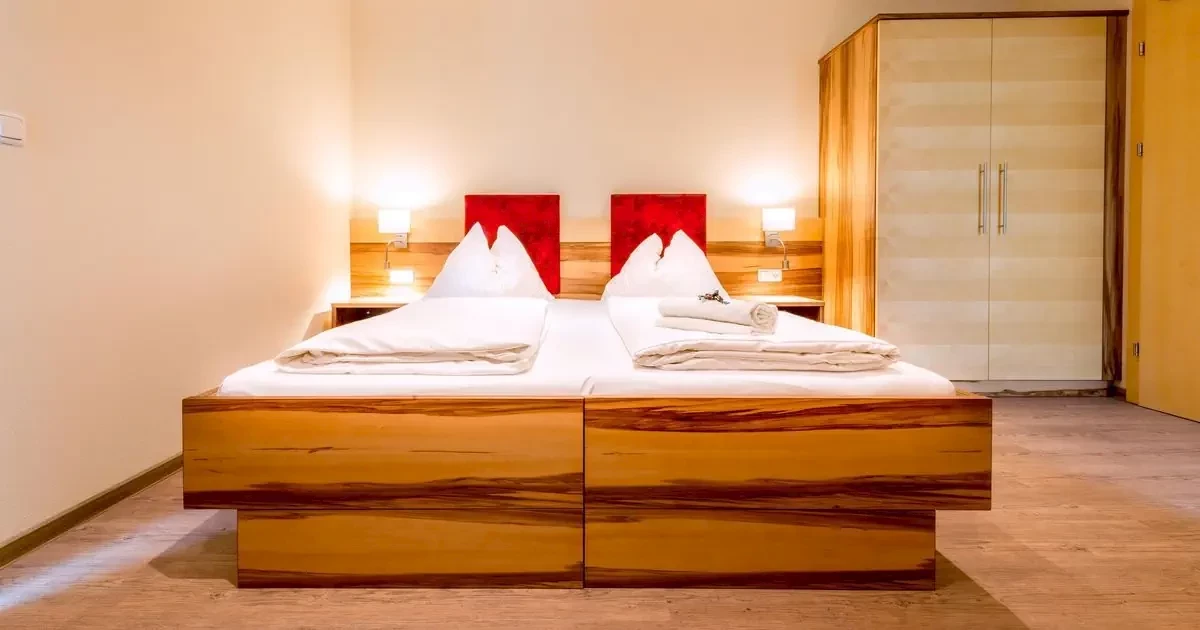 osobny pokój połączony drzwiami z podwójnym i pojedyńczym łóżkiem