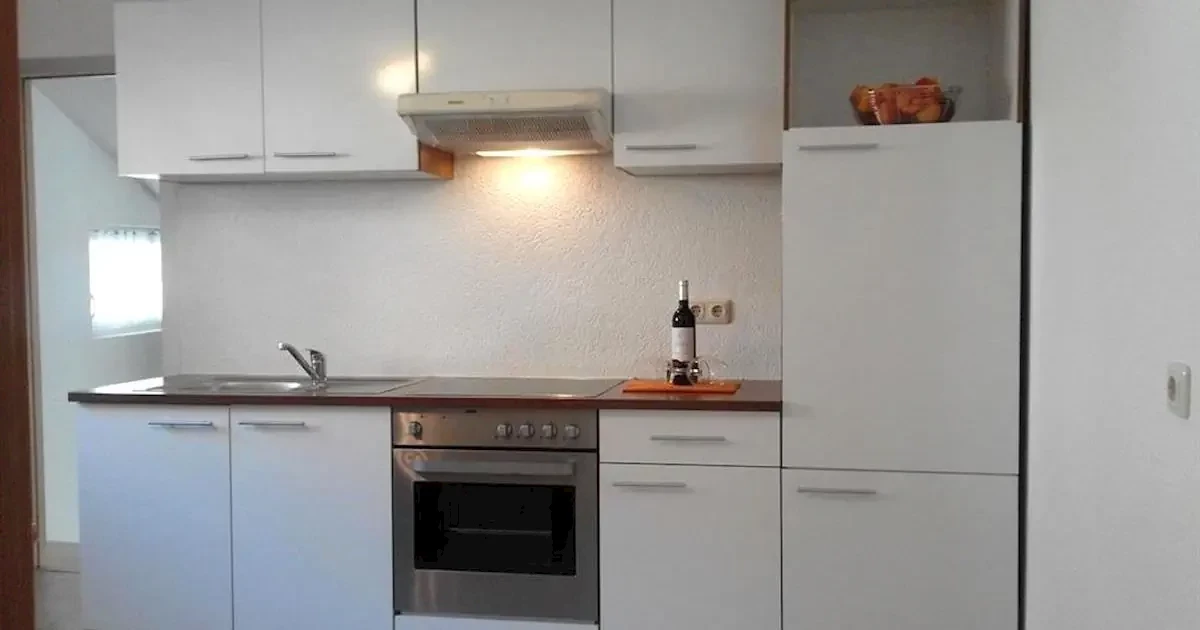 pokój dzienno-sypialny z łóżkiem pojedynczym, kanapą i TVkuchnia z kącikiem jadalnym, lodówką z zamrażalnikiem, kuchenką, piekarnikiem, ekspresem do kawy i czajnikiem