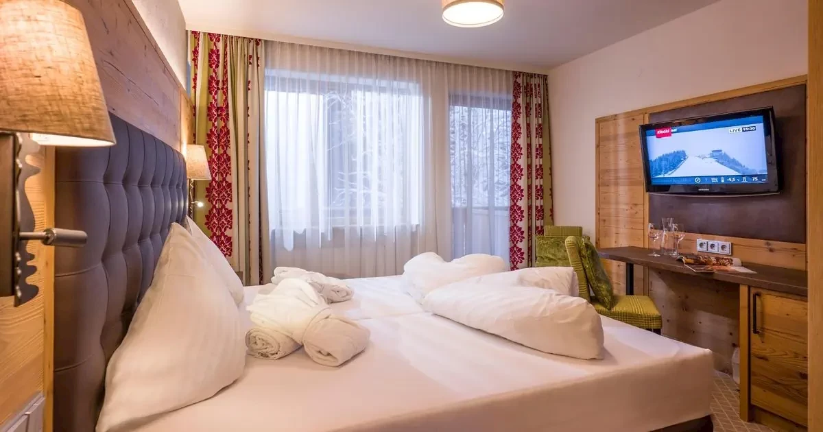 Noclegi w wybranym terminieWyżywienie jak wybranoKorzystanie ze strefy wellness (wg opisu)Płaszcz kąpielowy i klapki (do wypożyczenia)Menu bożonarodzeniowe i sylwestroweSejf (w pokoju)Miejsca parkingowe (ograniczona dostępność)Krzesełko dla dziecka (ograniczona dostępność)8% zniżki na kursy grupowe w naszej partnerskiej szkółce narciarskiejOpcjonalnie płatne na miejscu