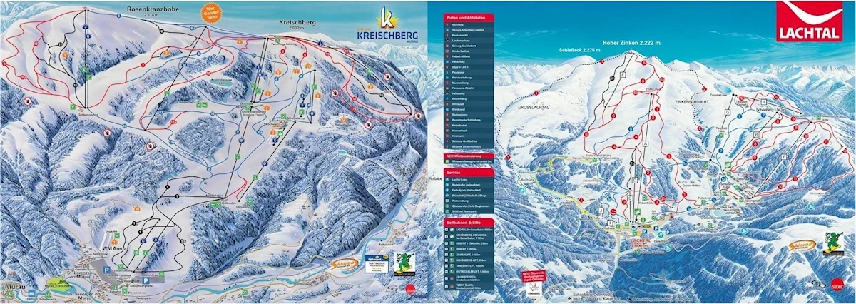 Maks. wysokość: 2118 mMin. wysokość: 868 mWys. miejscowość: 864 mWyciągi łącznie: 11Orczyki: 5Krzesełka: 3Gondole: 3Trasy łącznie: 42 kmTrasy zielone/niebieskie: 17 kmTrasy czerwone: 16 kmTrasy czarne: 9 kmRegion narciarski Karnet narciarski Mur-Mürz Top