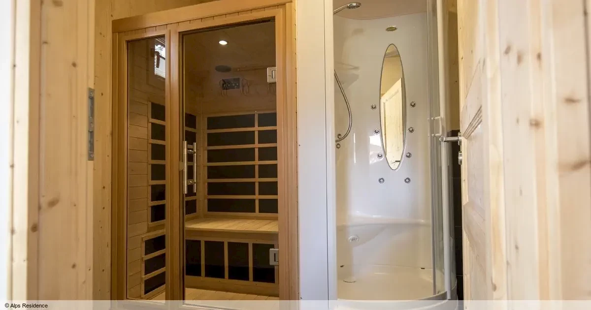 pokój dzienny z kuchnią z TV sat.2 pokoje sypialne z łóżkiem podwójnymzewnętrzne jacuzzi i kabina na podczerwieńbalkon lub tarasChalet 10-osob. (100 - 110 m2), SC, C0O1