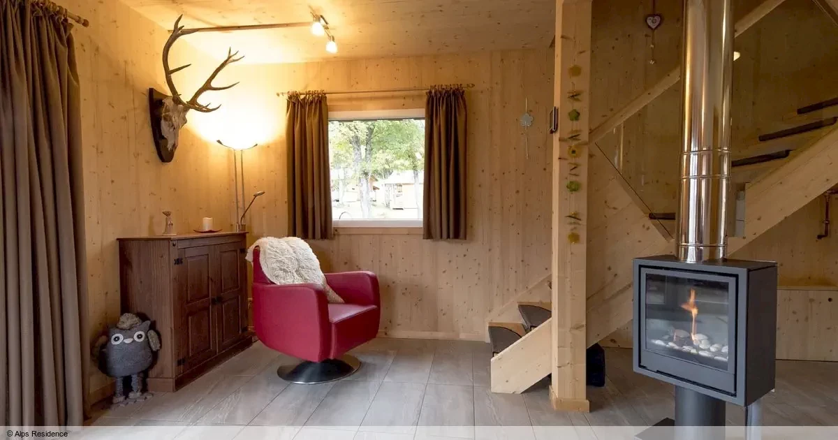 kuchnia mieszkalna z TV sat.2 x pokój sypialny każdy z łóżkiem podwójnym2 x pokój sypialny każdy z łóżkiem piętrowym lub 2 łóżkami pojedynczymikabina na podczerwień (lub sauna) i zewnętrzne jacuzzibalkon lub tarasChalet 6-osob. (70 - 100 m2), SC, C6O1