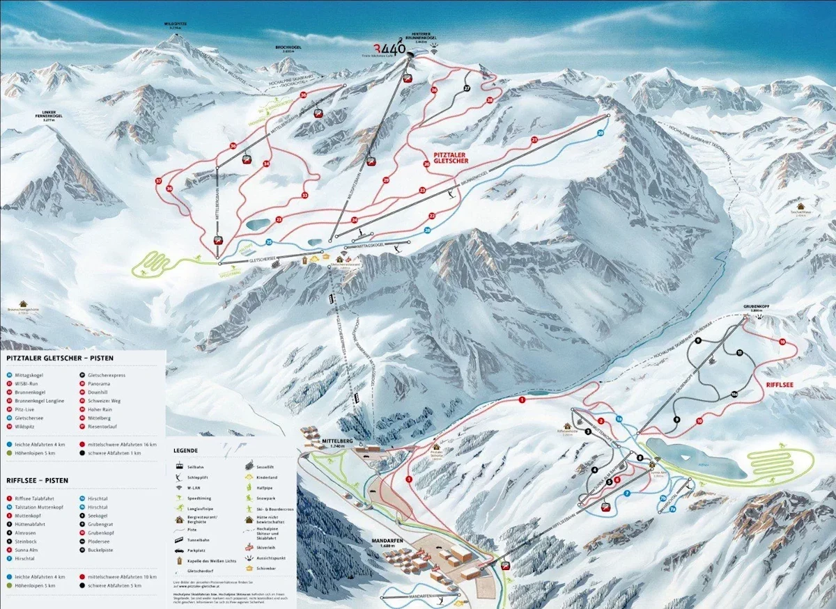 Jeżeli w cenę wliczone są dodatkowe usługi, prosimy o zapoznanie się z nimi w procesie rezerwacji.Teren narciarski Pitztaler Gletscher & Rifflsee