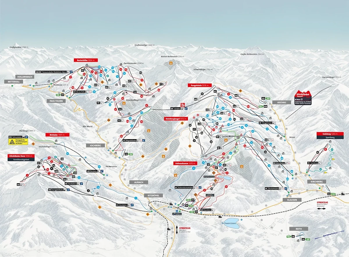 Kolej: Mittersill (w miejscowości), Kitzbühel (ok. 30 km), Kirchberg in Tirol (ok. 40 km)Przelot: Salzburg (ok. 105 km), Innsbruck (ok. 125 km), Monachium (ok. 190 km)Karnet narciarski - dodatkowe informacje.