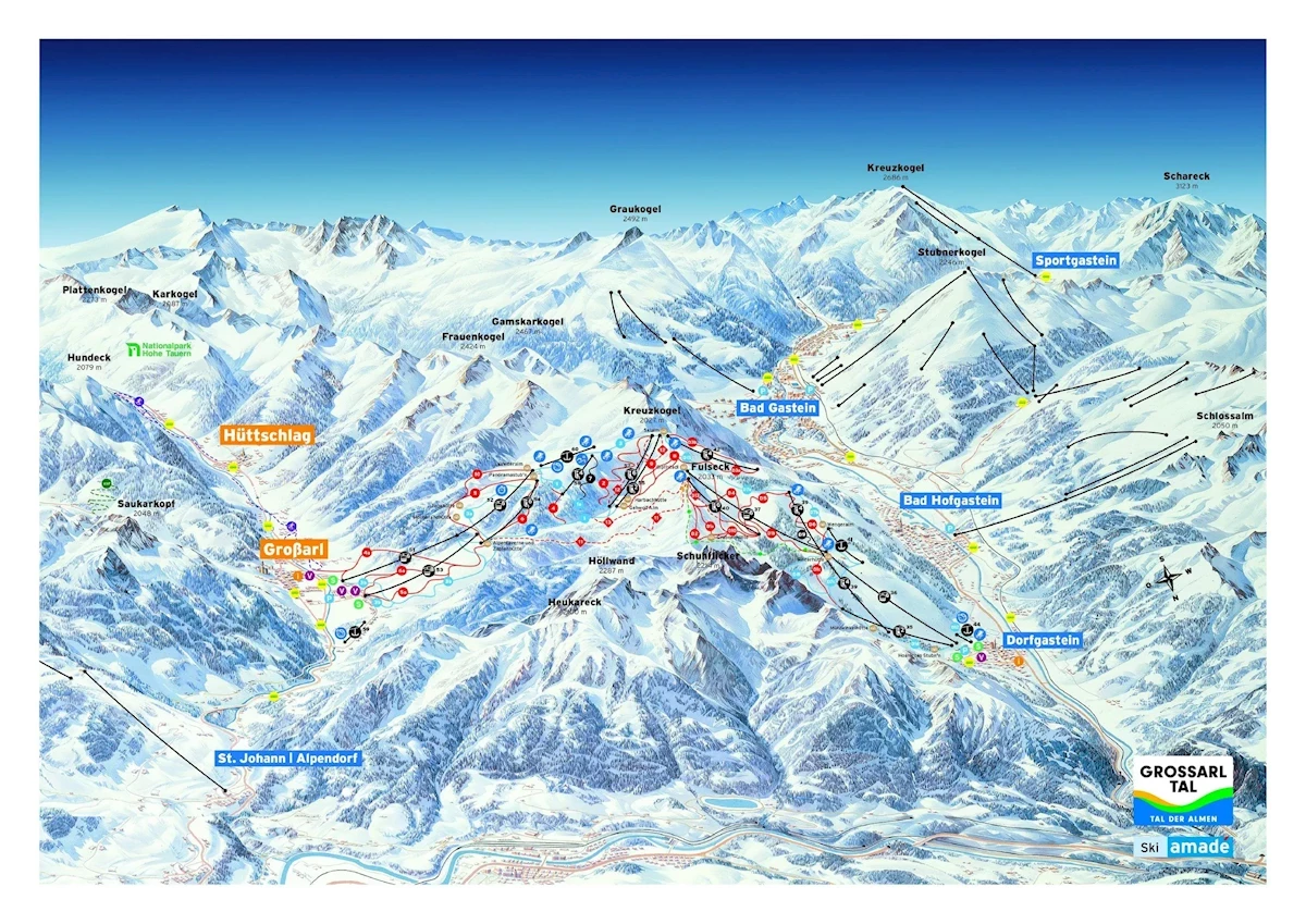 Maks. wysokość: 2033 mMin. wysokość: 849 mWys. miejscowość: 830 mWyciągi łącznie: 16Orczyki: 4Krzesełka: 6Gondole: 6Trasy łącznie: 68 kmTrasy zielone/niebieskie: 31 kmTrasy czerwone: 35 kmTrasy czarne: 2 kmRegion narciarski Gastein - Ski amadé