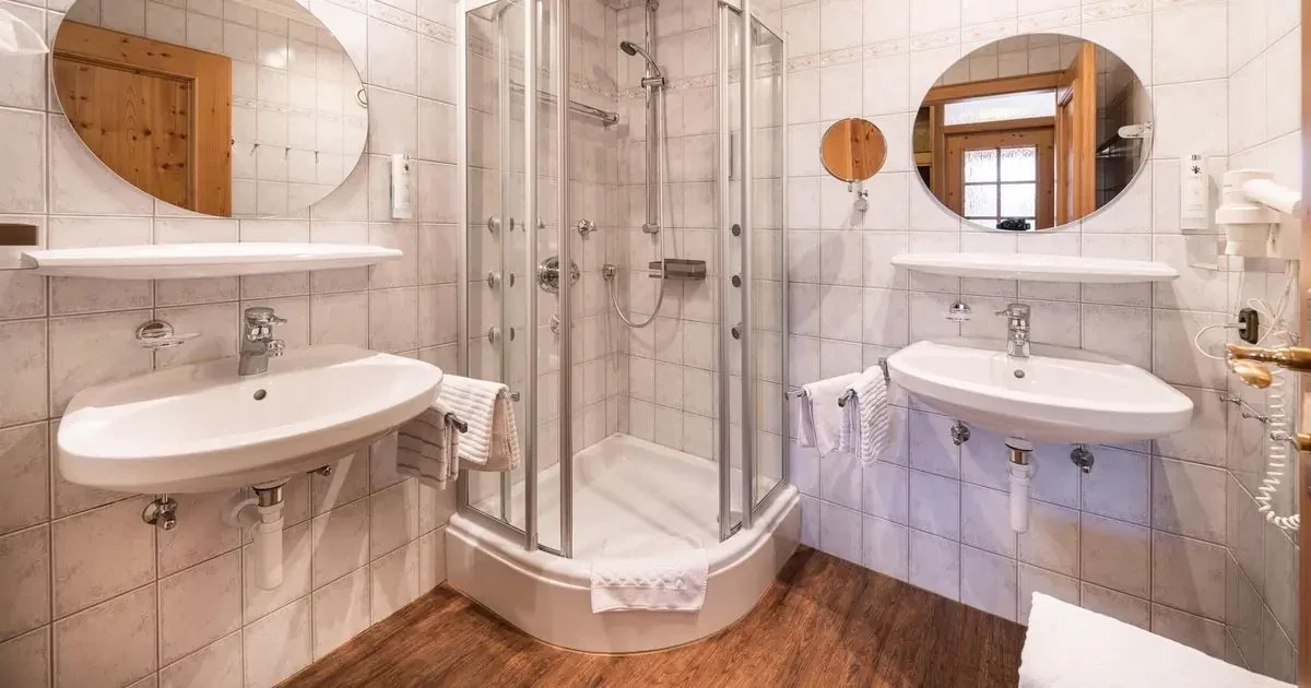 łazienka z prysznicem i suszarką do włosów