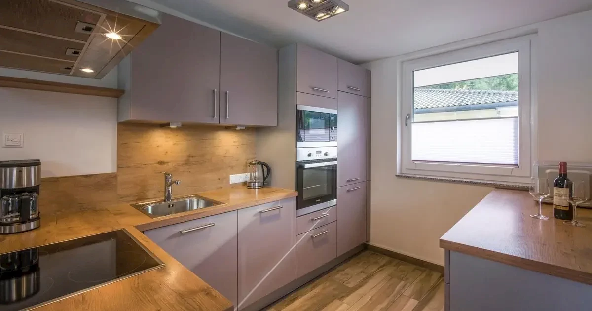 kuchnia wyposażona w kuchenkę, lodówkę z zamrażalnikiem, piekarnik, zmywarkę, czajnik elektryczny i ekspres do kawy