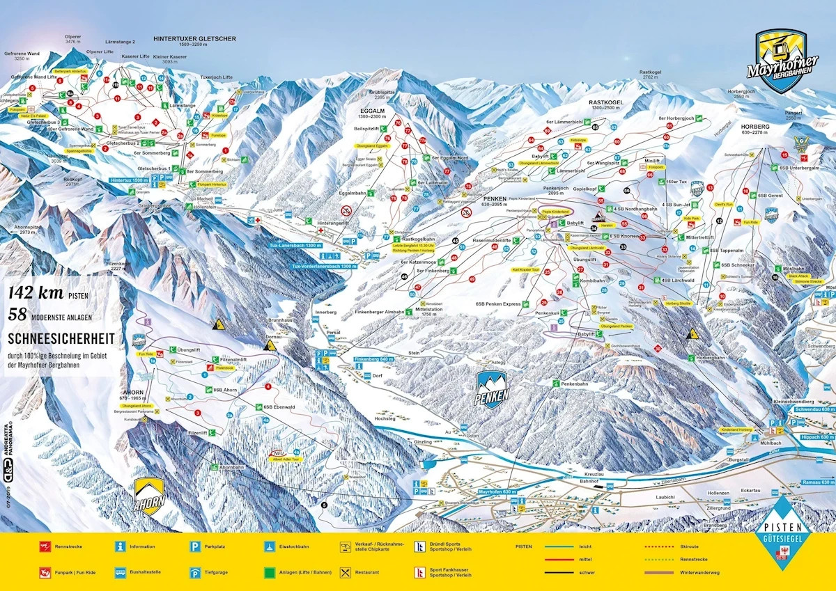 Maks. wysokość: 2500 mMin. wysokość: 630 mWys. miejscowość: 608 mWyciągi łącznie: 45Orczyki: 18Krzesełka: 17Gondole: 10Trasy łącznie: 142 kmTrasy zielone/niebieskie: 44 kmTrasy czerwone: 66 kmTrasy czarne: 32 kmRegion narciarski Zillertaler Superskipass