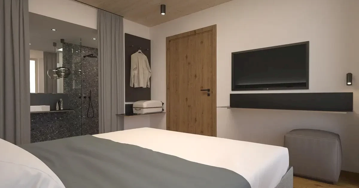 pokój: łóżko podwójnełazienka: prysznic/WC i suszarka do włosówwyposażenie: sejf, kącik wypoczynkowy, TV i Wi-FiPokój 2-osob. prysznic/WC (ok. 22 m2, Bergblick Panorama), BB, DOF5