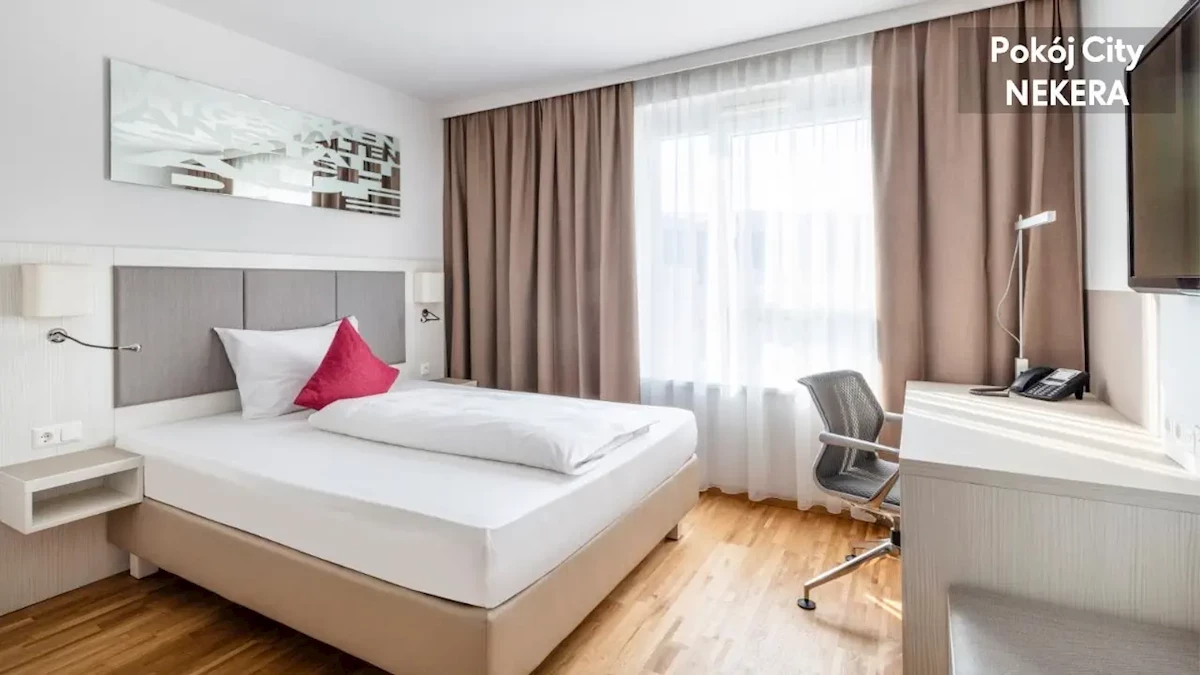Pokój Urban: ok. 20 m2, mogący zakwaterować do dwóch osób, jedno łóżko podwójne TV, Wi-Fi, sejf, biurko, prywatna łazienka (prysznic, toaleta, umywalka, suszarka do włosów, zestaw kosmetyków). Pokój City: ok. 20 m2, mogący zakwaterować do dwóch osób, jedno łóżko podwójne, prywatna łazienka i oddzielna toaleta; poza tym wyposażony jak pokój Urban. Pokój Deluxe: ok. 24 m2, mogący zakwaterować do dwóch osób, jedno łóżko podwójne lub dwa łóżka pojedyncze, mini lodówka, czajnik, herbata, prywatna łazienka z oddzielną toaletą; poza tym wyposażony jak pokój Urban. Pokój Prestige: ok. 24 m2, mogący zakwaterować do dwóch osób, jedno łóżko podwójne, mini lodówka, ekspres do kawy, czajnik, herbata, taras (ok. 9 m2); poza tym wyposażony jak pokój Urban.Sport i Wellness