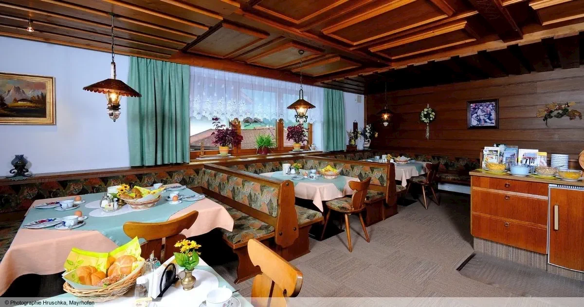 Rodzinnie prowadzony Haus Bergfriede jest położony w Mayrhofen, ok. 350 m od centrum miejscowości. Kolejka górska Ahornbahn oddalona jest ok. 400 m a Penkenbahn ok. 550 m. Przystanek autobusu dla narciarzy oddalony zaledwie o ok. 100 m. Przy dobrej pogodzie można zjechać na nartach bezpośrednio do doliny, ok. 200 m od obiektu. Do dworca kolejki Zillertalbahn jest ok 1 km.Haus Bergfriede posiada przytulny pokój śniadaniowy i ogrzewaną przechowalnię nart z suszarką do butów. Z Wi-Fi można korzystać w całym budynku bezpłatnie. Zadaszone miejsca parkingowe dla gości w ograniczonej dostępności.Pokoje/apartamentyPrzytulne pokoje z prysznicem/WC, TV sat., Wi-Fi, sejfem, radiem i balkonem. W apartamentach pokój sypialny z łóżkiem podwójnym i pojedynczym, TV sat., Wi-Fi, balkon oraz oddzielna kuchnia z kuchenką 2-palnikową, mikrofalówką z funkcją grilla, zmywarką do naczyń, czajnikiem, ekspresem do kawy i tosterem, a także przytulnym kącikiem wypoczynkowym.WyżywieniePrzy rezerwacji pokoi w cenie zawarte jest śniadanie w formie bufetu. Dania wegetariańskie są również dostępne. Na zapytanie mogą Państwo zamówić produkty bez gluteny czy laktozy. Przy rezerwacji apartamentów oferta nie obejmuje wyżywienia. Śniadanie lub dostawę pieczywa można zarezerwować na miejscu za dodatkową opłatą.Świadczenia w cenie