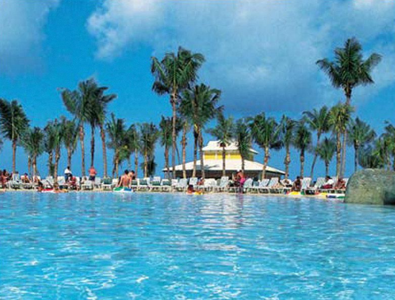 Paradise Island, jedna z najczęściej odwiedzanych wysp na Bahamach, ok. 600 m od Dolphin Cay - miejsce gdzie można nurkować z delfinami, ok. 700 m od parku wodnego Aquaventure, ok. 2 km od Predator Lagoon - podwodny tunel zanurzony w lagunie, ok. 14 km od lotniskaPlaża