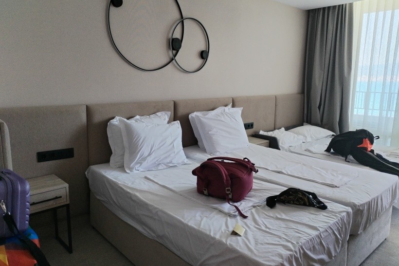 Pokoje przestronne z balkonami. Piekny widok na morze i Sloneczny Brzeg. Wygodne materace do spania, szerokie łóżka. Codziennie wymieniane ręczniki i sprzątanie pokoju na życzenie. W każdym pokoju klimatyzacja, sejf i lodówka.