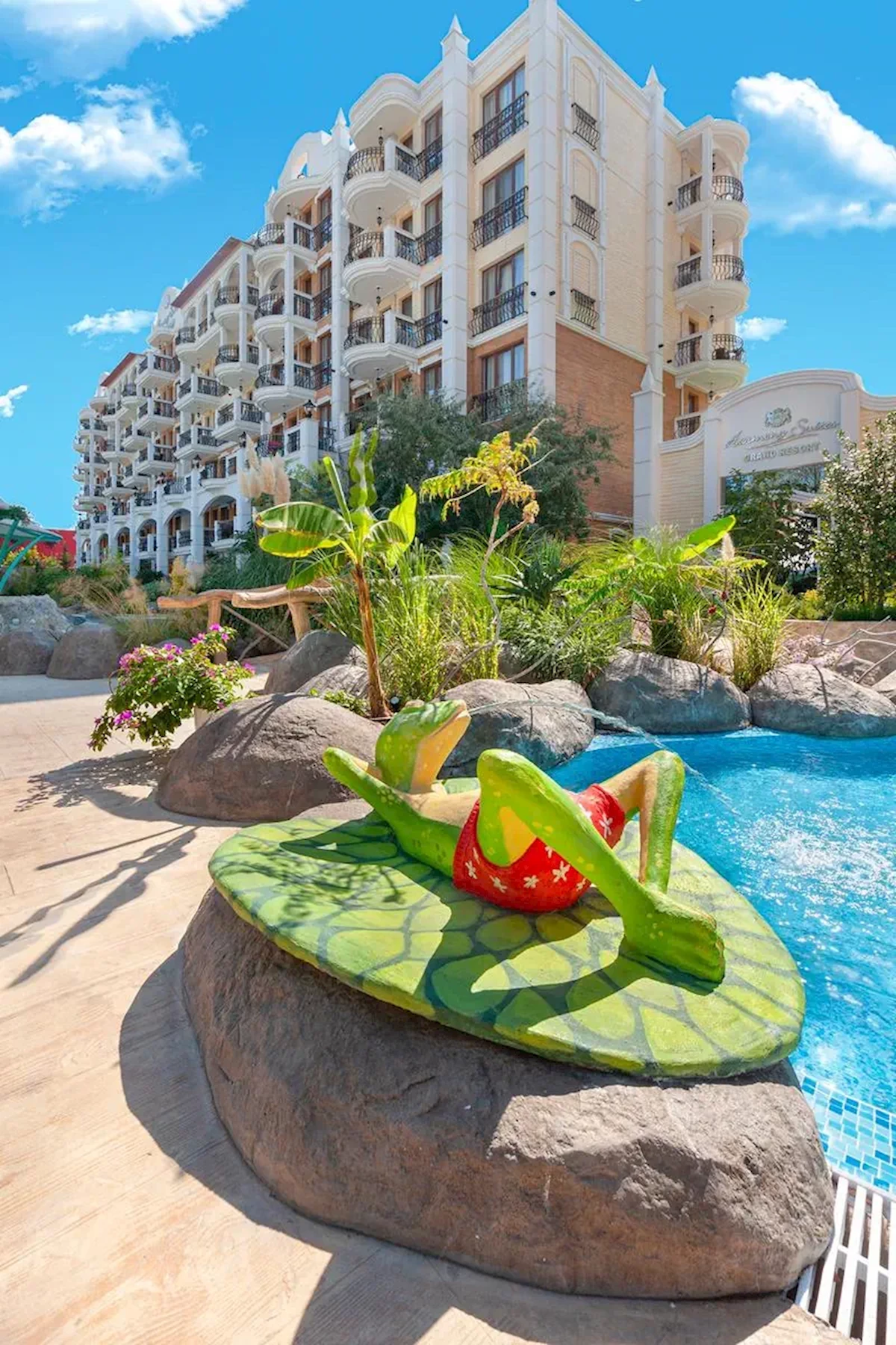 Harmony Suites Grand Resort to kompleks apartamentów w Słonecznym Brzegu. Harmony Suites Grand Resort dysponuje wspaniałym ogrodem, idealnym na spokojne spacery i relaks. W bliskiej odległości od kompleksu goście mogą znaleźć restauracje i supermarkety, a także Grand Club i kasyno Cuban. Dla rozrywki goście mogą odwiedzić tor kartingowy. Harmony Suites Grand Resort jest idealnym miejscem na idealne relaksujące wakacje z przyjaciółmi i rodziną.LOKALIZACJA - w Słonecznym Brzegu, ok. 1,5 km od centrum, ok. 27 km od lotniska w Burgas