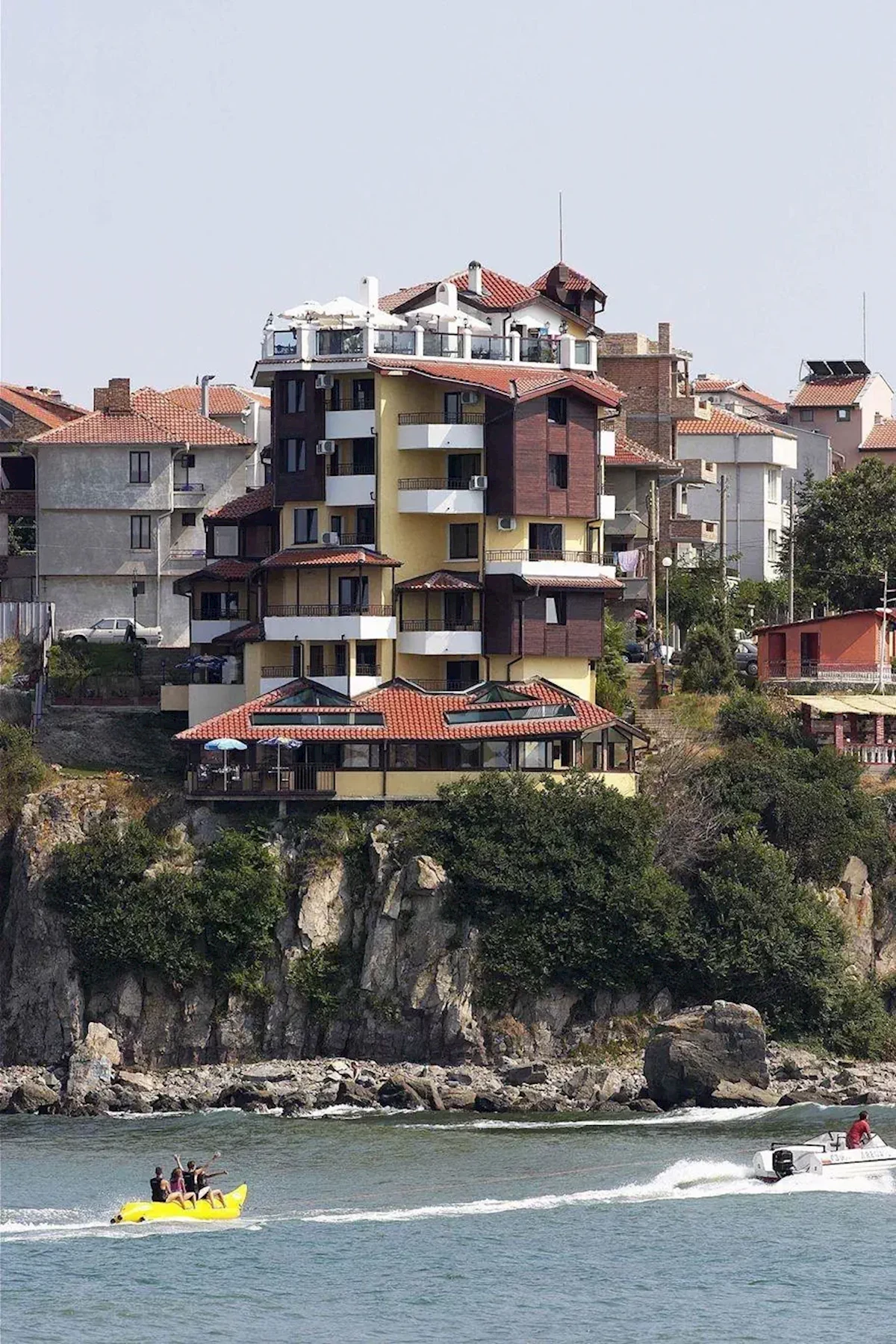 Położony zaledwie 100 metrów od centralnej plaży, oferuje panoramiczne widoki na Morze Czarne i zabytkowe centrum miasta. Goście mogą korzystać z klimatyzowanych pokoi wyposażonych w telewizję, mini lodówke oraz prywatną łazienkę. Na terenie hotelu znajduje się restauracja serwująca dania kuchni bułgarskiej i międzynarodowej.