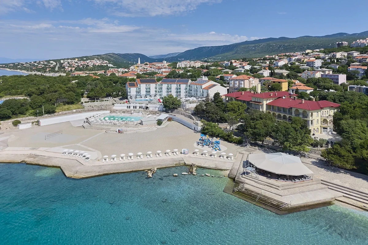 ok. 500 m od centrum miejscowości Novi Vinodolski, ok. 15 min. jazdy od miejscowości Crikvenica, ok. 30 km od lotniska Rijeka.Plaża