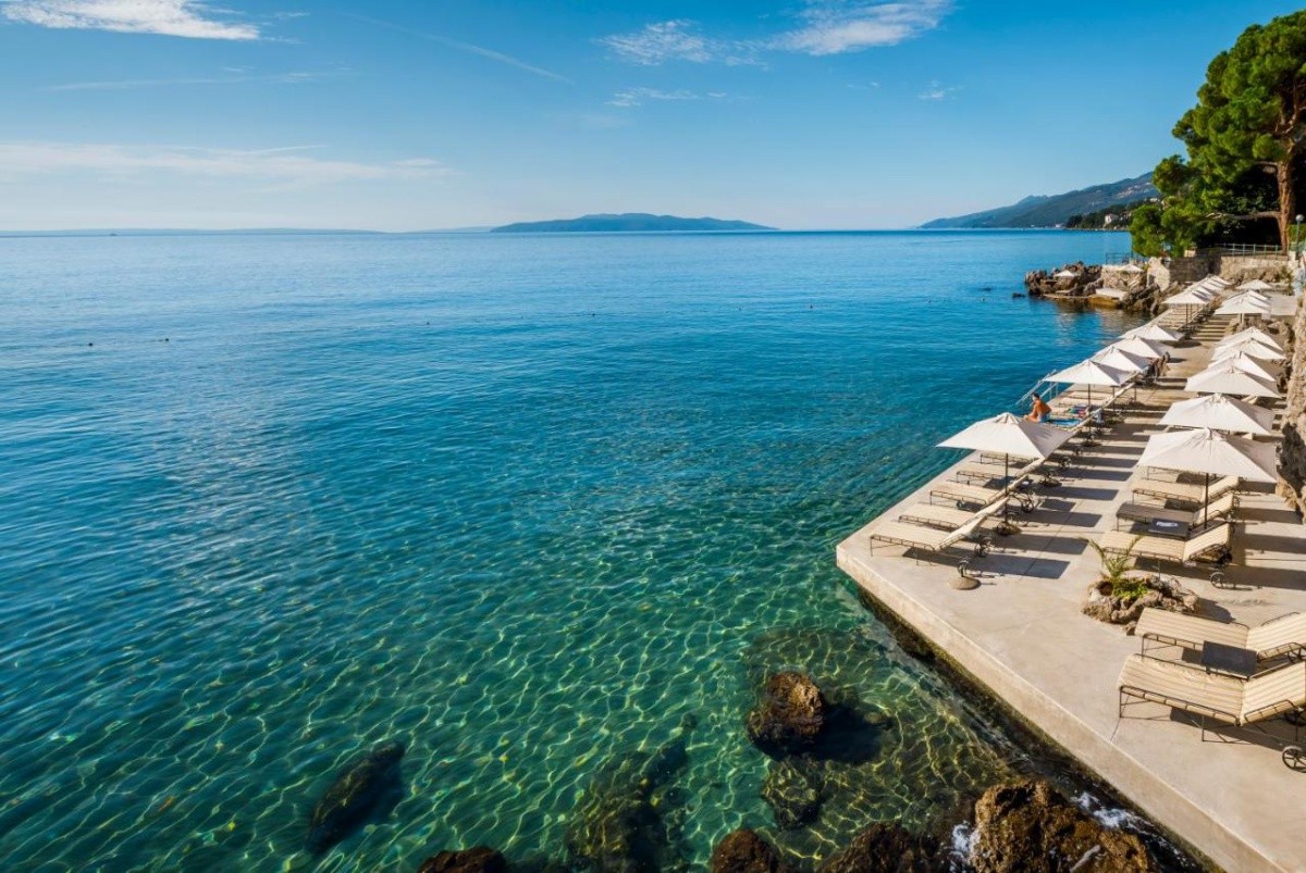 Hotel w stylu neoklasycystycznym położony jest w popularnym regionie wypoczynkowym Opatija, bezpośrednio przy prywatnej kamienistej plaży. Do centrum miasta z licznymi sklepami i rozrywkami można dojść w zaledwie kilka minut. Odległość od lotniska w Rijece wynosi około 43 km.