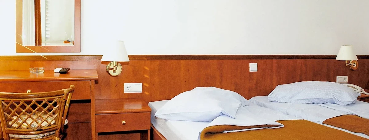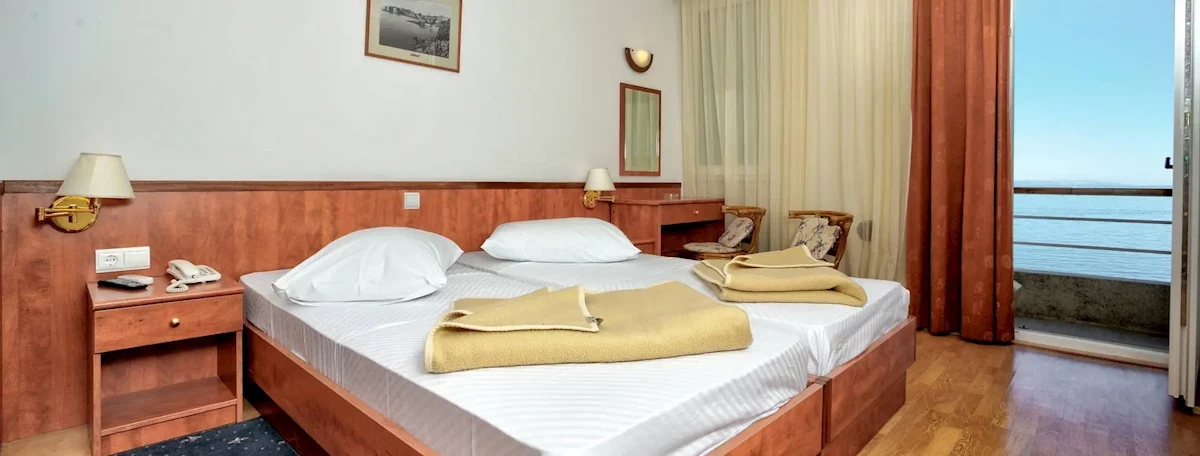 Hotel posiada 150 funkcjonalnie i wygodnie urządzonych pokoi 2-osobowych (możliwość 1 dostawki w formie łóżka polowego, tylko w pokojach z widokiem na morze) z łazienkami i balkonami. W pokojach znajdują się: telefon, TV-sat, klimatyzacja (centralnie sterowana, bezpłatnie).