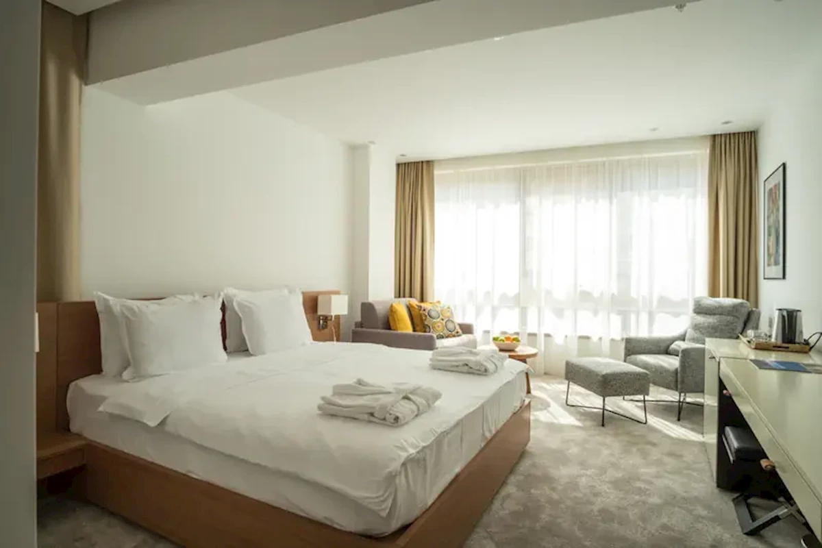 Pokoje wyposażone są w klimatyzację, centralne ogrzewanie i łazienkę. Większość pokoi posiada balkon z widokiem na okolicę. Urzekającą atmosferę wielu kwater podkreśla widok na morze. Wyłożone wykładziną pokoje wyposażone są w łóżko typu queen size oraz sofę. Opcjonalnie dostępne są oddzielne sypialnie. Istnieje możliwość dostawki. Ponadto skorzystać można z sejfu, minibarku i biurka. W skład standardowego wyposażenia wchodzi również ekspres do kawy / herbaty. Elementami podwyższającymi komfort pobytu są telefon, telewizor i Wi-Fi. W pokoju znajdziecie Państwo również obuwie domowe. Łazienki wyposażone są w prysznic i wannę. W łazience znajduje się suszarka do włosów, lusterko kosmetyczne, szlafroki i telefon. Ekskluzywnie dla naszych gości przygotowaliśmy w łazienkach artykuły kosmetyczne i komplet ręczników. Obiekt oferuje pokoje rodzinne i pokoje dla niepalących.Informacje dodatkowe (Pokoje Ekonomiczne/ Promocyjne/ Aneks/ Run Of the House):