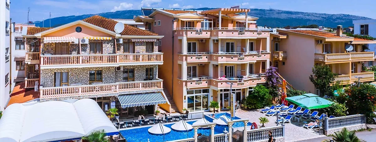 Hotel położony w spokojnej dzielnicy miejscowości Ulcinj,. Do centrum i Starego Miasta Ulcinj można dojechać taksówką (ok. 3-4 EUR), do plaży dowozi bezpłatny bus hotelowy. W mieście oprócz uroków zabytkowej dzielnicy znajdziemy także sporo typowych dla kurortu atrakcji: liczne bary, restauracje, sklepy, kluby i dyskoteki. Transfer z lotniska do hotelu trwa ok. 1,5 godz. z Podgoricy, ok. 4,5 godz. z lotniska w Dubrowniku.