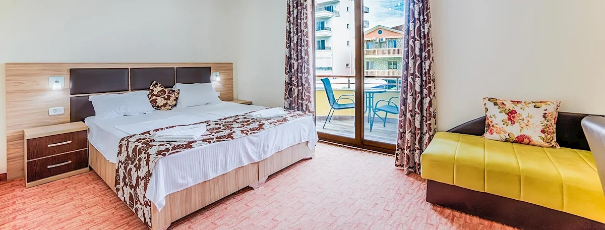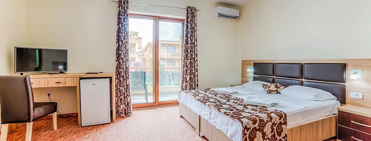 Hotel posiada 26 przestronnie urządzonych pokoi 2-osobowych z łóżkami małżeńskimi (możliwość 1 dostawki w formie łóżka pojedynczego lub sofy) z balkonami i łazienkami. W pokojach znajdują się: TV-sat, klimatyzacja (indywidualnie sterowana, bezpłatna).