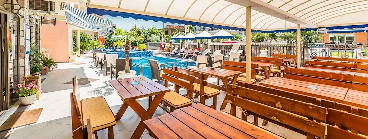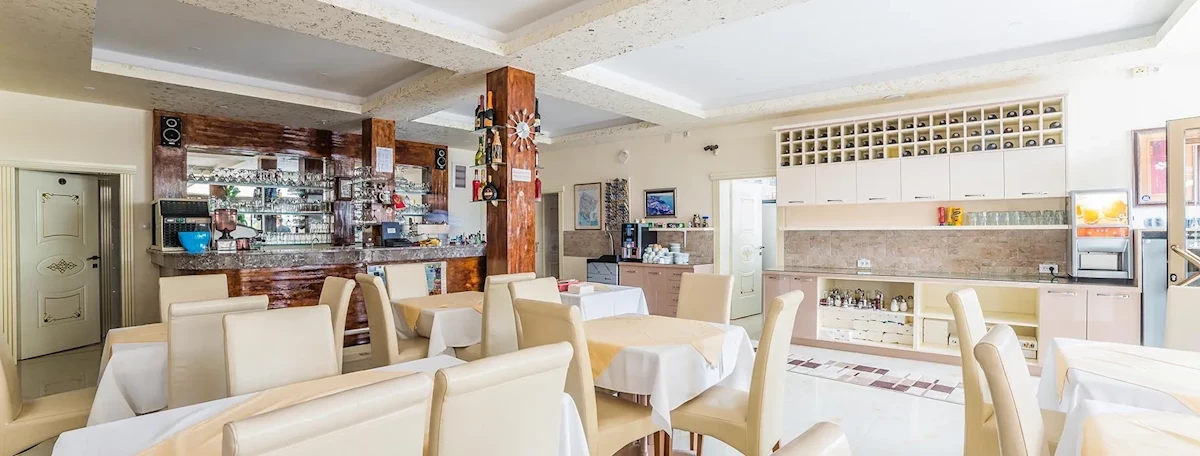 Śniadania w formie bufetu i obiadokolacje serwowane. Restauracja serwuje dania kuchni czarnogórskiej i międzynarodowej.