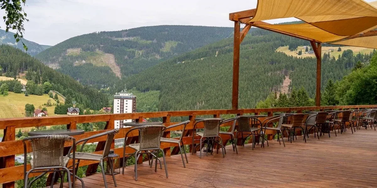Chata Orlik to obiekt z ciekawą koncepcją. Położony w miejscu, którego nie powstydziłoby się żadne górskie schronisko, oferuje zarazem wyżywienie all inclusive i atrakcje takie jak sucha sauna i jacuzzi. Do tego piękne widoki, wygodne pokoje i ośrodek narciarski 500 m od Chaty – to wszystko sprawia, że tutaj skorzystasz w pełni z uroków czeskich Karkonoszy. Udogodnienia: Jacuzzi, SPA, Sauna, Masaże, Wellness, Zabiegi odnowy biologicznej, Bar / restauracja, Dyskoteka / klub nocny, Pobyt z pupilem, Płatność kartą, Przy stoku