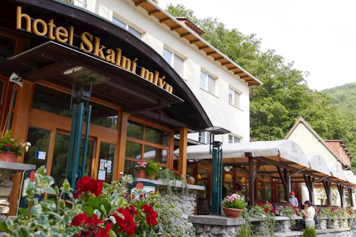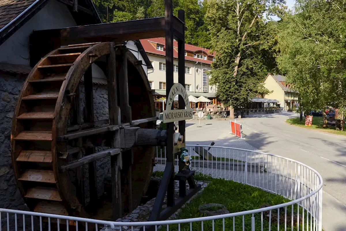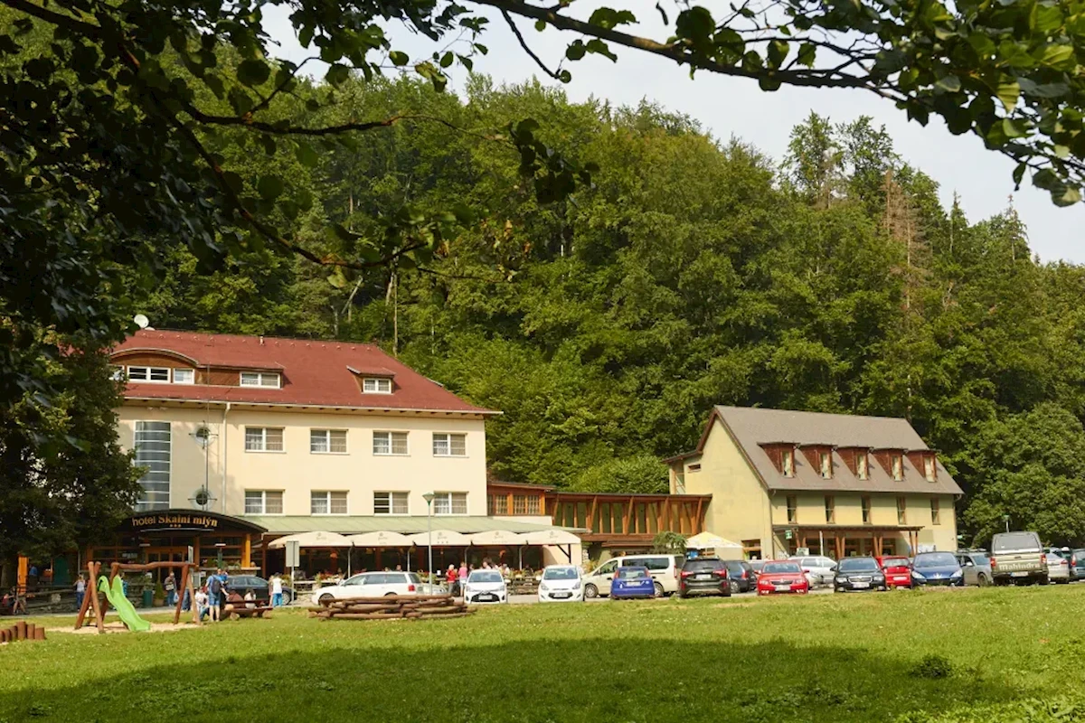 Hotel „SKALNI MLYN” *** położony w sercu Morawskiego Krasu, w doskonałym miejscu na rozpoczęcie pieszych lub rowerowych wycieczek po Morawskim Krasie, w pobliżu Przepaści Macocha i Punkevni Jaskini oraz kolejki linowej na Macochę, przystanek wycieczkowego pociągu znajduje się przy Hotelu.