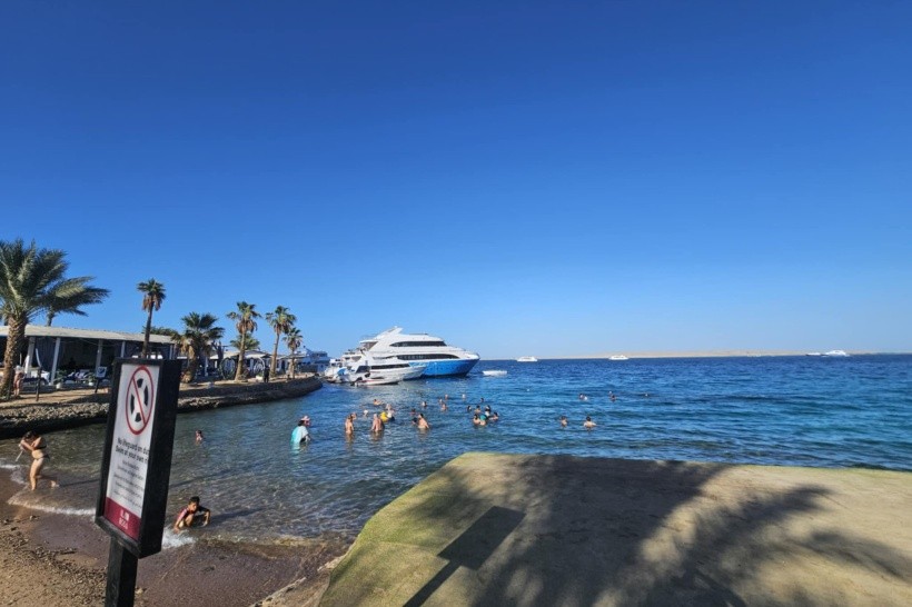 Plaza śliczna, kawałek od brzegu koral. Mozliwość nurkowania, surfowania, jazdy na wielbłądach, wycieczki na pustynię i Kairu.