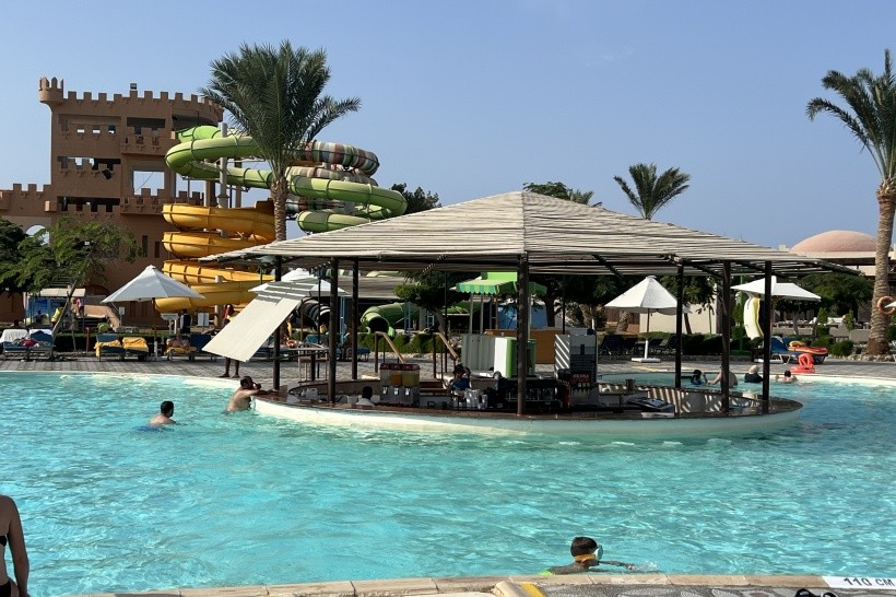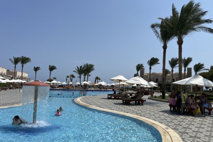 Plaża jest szeroka, czysta i świetnie utrzymana. Ogromnym atutem jest brak zatłoczenia – leżaki były dostępne o każdej porze dnia, zarówno na plaży, jak i przy licznych basenach. Basenów jest tak dużo, że przy niektórych spotykało się zaledwie kilka osób. Idealne miejsce dla tych, którzy szukają spokoju i odpoczynku bez gonitwy o miejsce nad wodą.