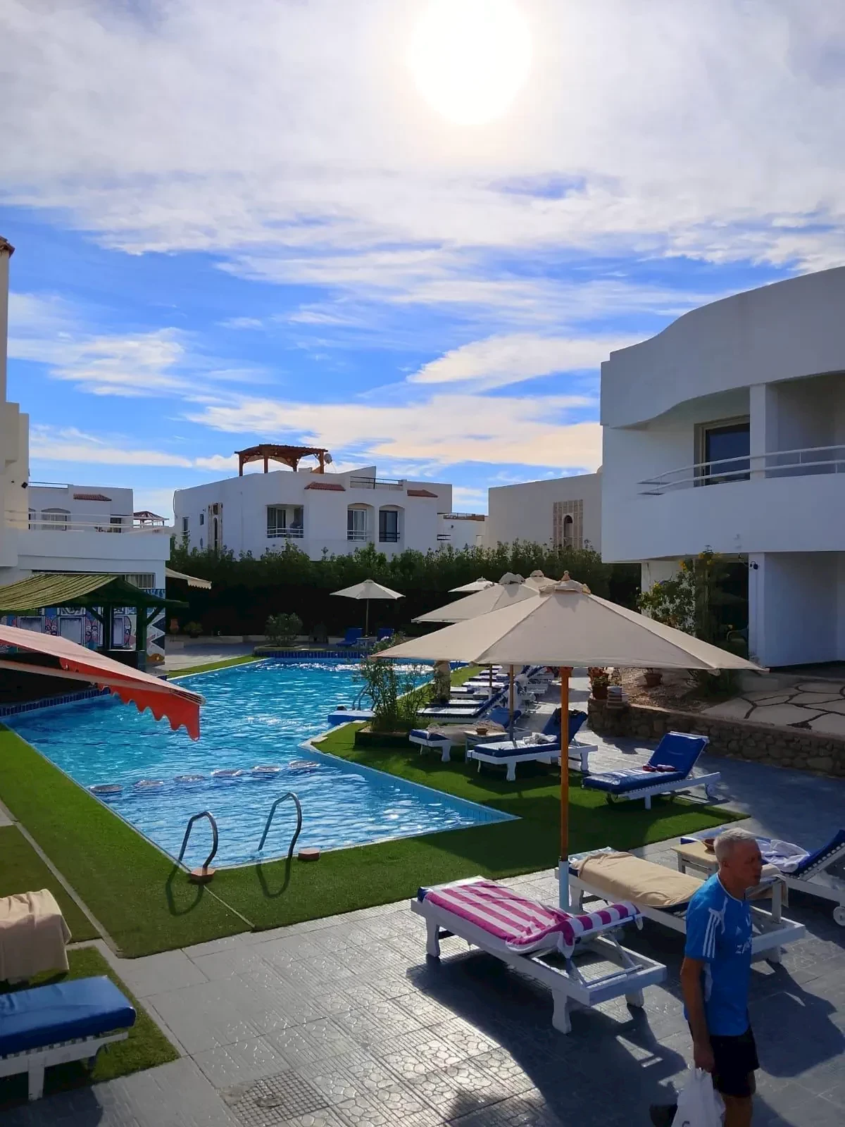 Hotel ma 4 gwiazdki według CA, ale niestety wcale im nie dorównuje. Byłem już w 3-gwiazdkowym i muszę przyznać, że było lepiej. Jak to zwykle bywa w Egipcie, są tu mili i uśmiechnięci ludzie, ciepło i słońce, dlatego ludzie, a przynajmniej ja, tam chodzę, ale niestety muszę przyznać, że jedzenie było naprawdę kiepskie – nie dość, że nie było wyboru, to jeszcze wszystko było cały czas takie samo, a czasami nawet nie smakowało. Za LM 12 000,- naprawdę kiepsko. Co jednak było dobre, to masaże, co prawda w szopie, ale naprawdę świetne. Klientela składała się głównie z Rosjan. Gdyby oferowano go jako 3-gwiazdkowy za nieco niższą cenę, to by mu dorównywał, ale nie w taki sposób.