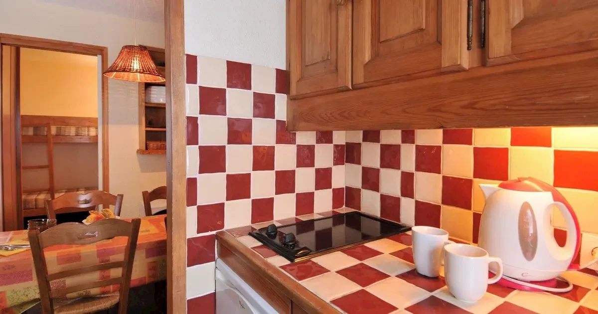 pokój dzienno-sypialny z kuchnią, 2 pojedynczymi łóżkami i TVnisza kuchenna z lodówką, kuchenką mikrofalową z funkcją grilla, zmywarką do naczyń i 2-palnikową kuchenkąnisza sypialna z łóżkiem piętrowymłazienka z wannąoddzielne WCbalkon od południaWi-Fi (za opłatą)zwierzęta domowe nie są dozwoloneStudio 4-osob. (ok. 28 m2, AG21), SC, S4O3