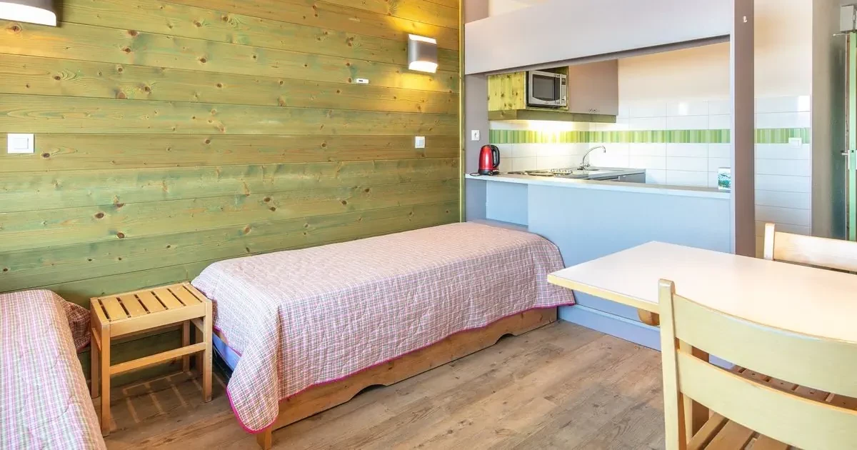 pokój dzienno-sypialny z aneksem kuchennym, 2 łóżkami pojedynczymi, dostawką i TV