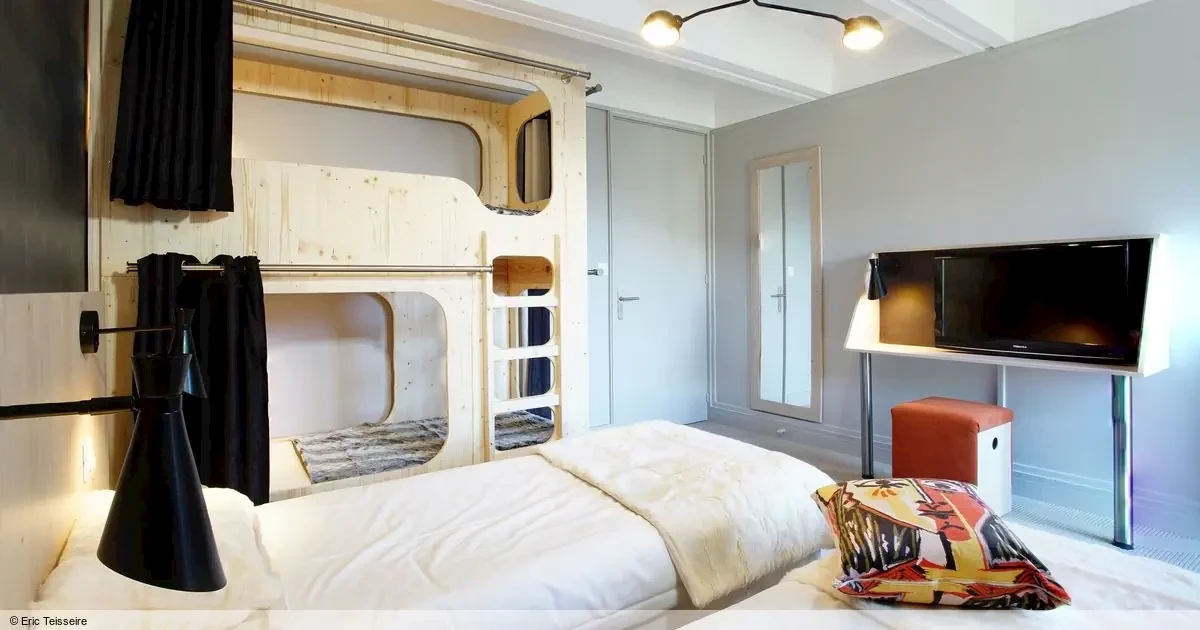 pokój z podwójnym łóżkiem, łóżkiem piętrowym i TV