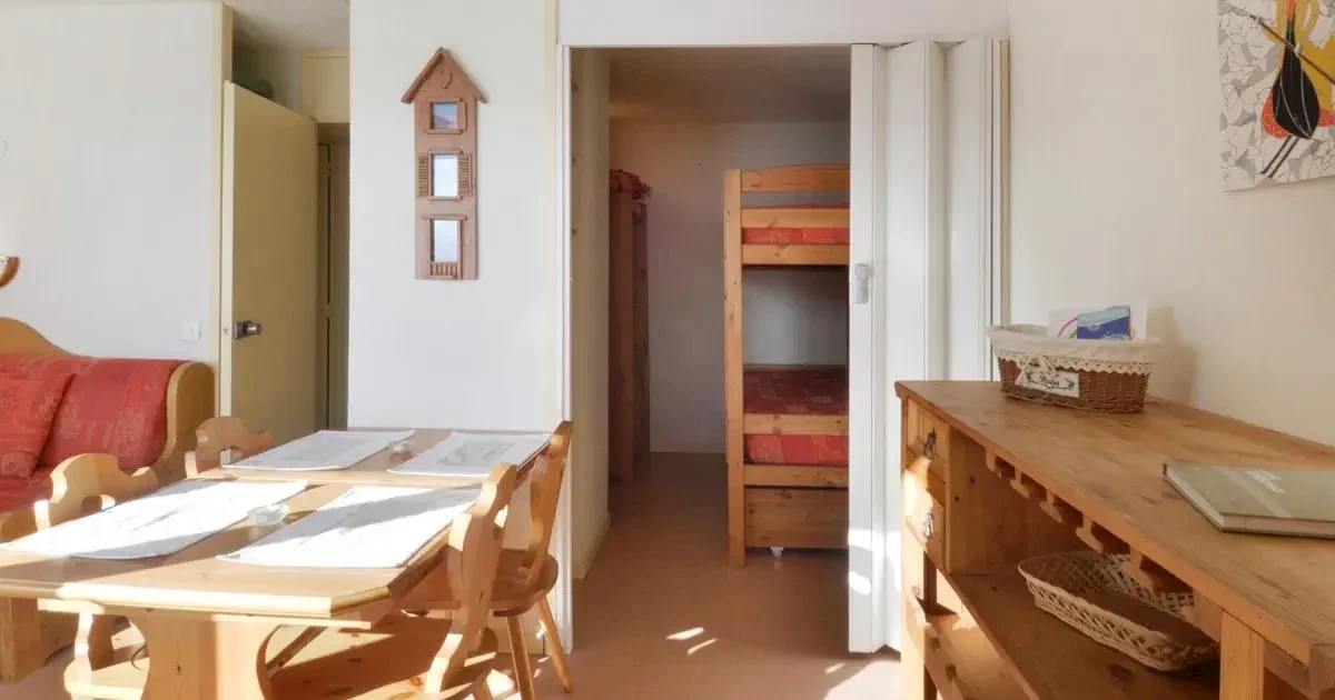 pokój dzienno-sypialny z dwoma łóżkami pojedynczymi, łóżkiem piętrowym i TVnisza kuchenna z lodówką , kuchenką mikrofalową, zmywarką do naczyń i kuchenkąłazienka z wannąoddzielna WCbalkon od południaWi-Fi (za opłatą)Studio 4-osob. (ok. 28 m2, RS326), SC, S4OI