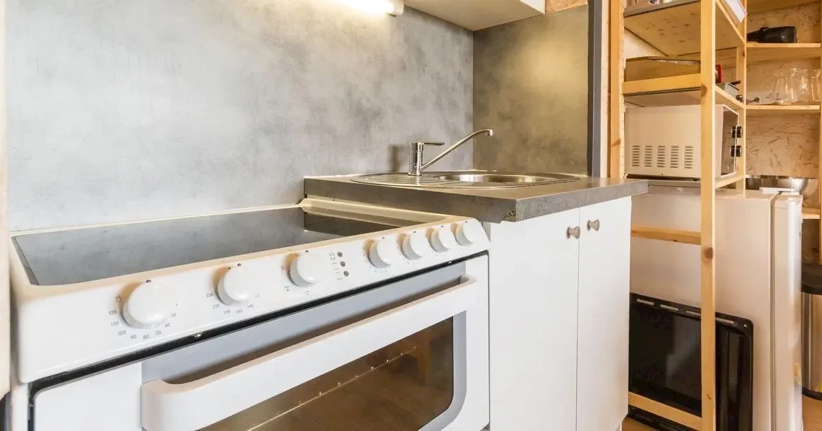 kuchnia z lodówką, kuchenką mikrofalową, mini-piekarnikiem i kuchenką