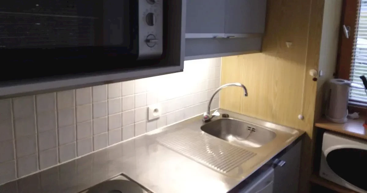 kuchnia z lodówką, kuchenka mikrofalową z funkcją pieczenia, zmywarką i 2-palnikową kuchenką