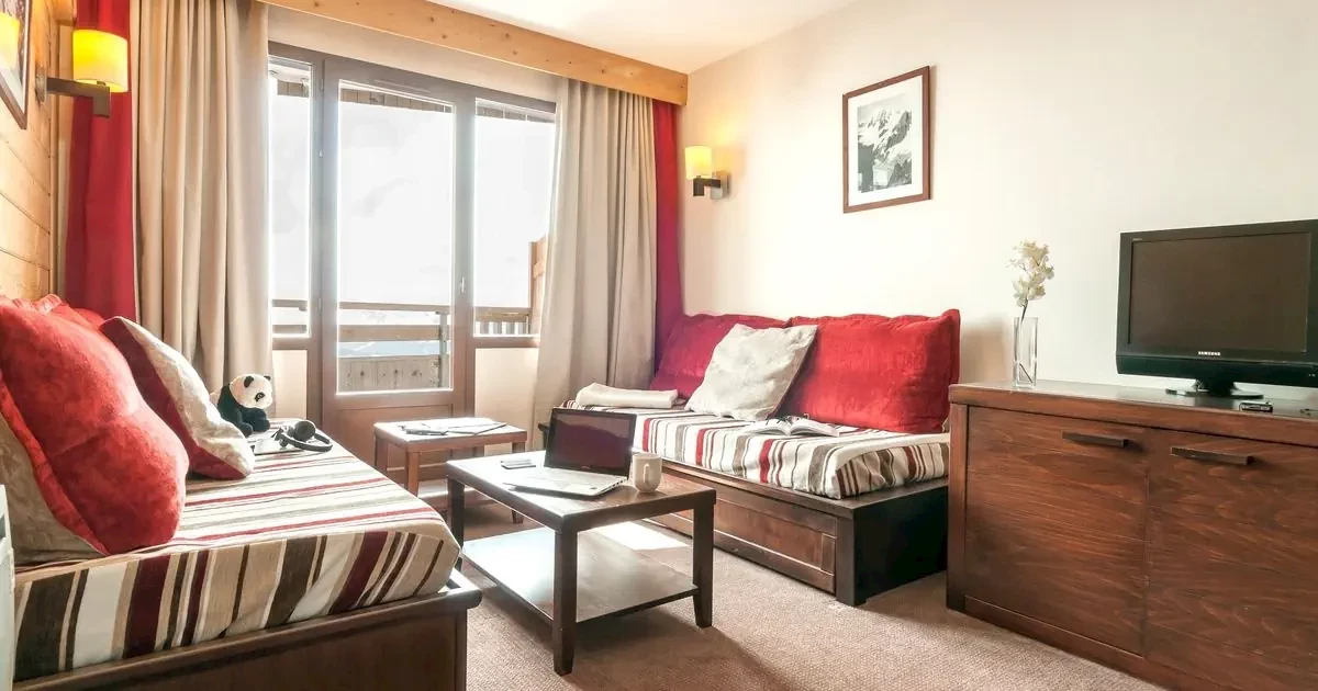 pokój dzienno-sypialny z 2 kanapami sypialnymi i TVpokój sypialny z łóżkiem podwójnymnisza sypialna z łóżkiem piętrowym lub 2 kanapami sypialnymibalkon lub tarasApartament 4-osob. (19 - 24 m2), SC, A4O2