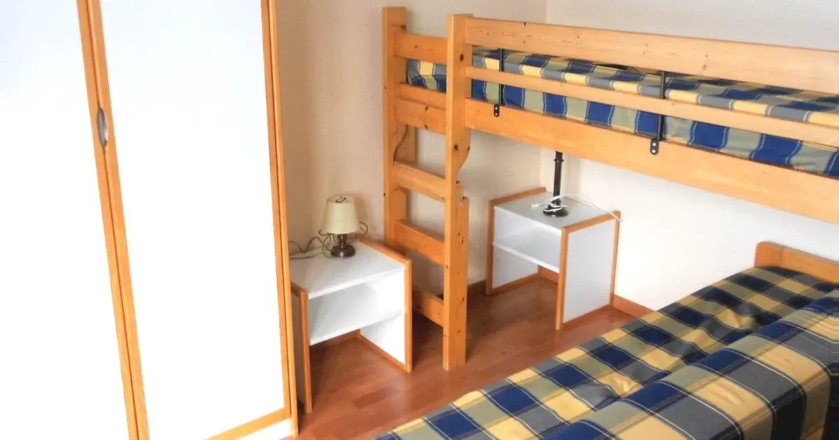 sypialnia z łóżkiem piętrowym i pojedynczym łóżkiem