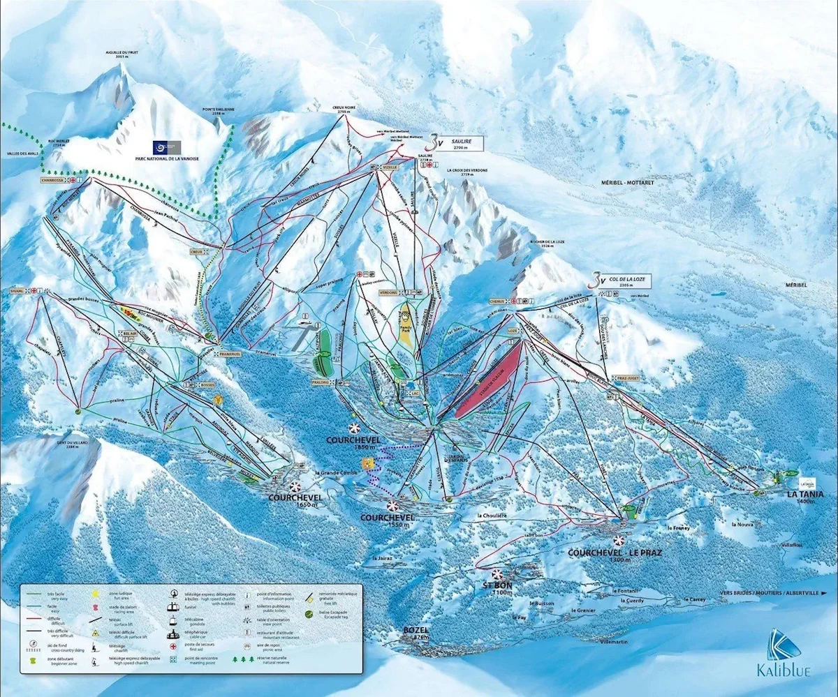 Maks. wysokość: 2738 mMin. wysokość: 1100 mWys. miejscowość: 1550 mWyciągi łącznie: 56Orczyki: 29Krzesełka: 17Gondole: 10Trasy łącznie: 150 kmTrasy zielone/niebieskie: 86 kmTrasy czerwone: 49 kmTrasy czarne: 15 kmRegion narciarski Les 3 Vallées