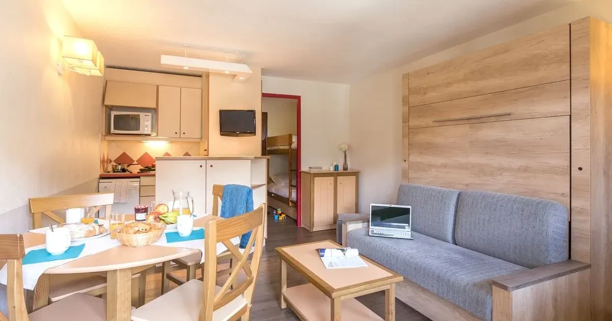 pokój dzienno-sypialny z podwójną rozsuwaną kanapą i TVpokój sypialny z łóżkiem podwójnymnisza sypialna z łóżkiem piętrowym (zalecane dla dzieci)częściowo apartamenty dwupoziomoweMiejscowość