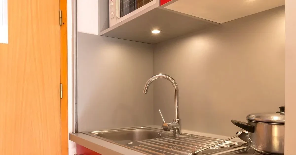 pokój dzienno-sypialny z niszą kuchenną, podwójną wysuwaną kanapą i TV