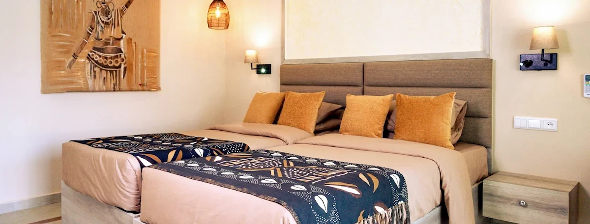 Pokoje urządzone są w elegancki, schludny sposób. Ponadto ciepłe barwy dodają poczucia komfortu. Wyposażone są w klimatyzację, mini lodówkę, zestaw do parzenia kawy i herbaty, sejf, TV sat, telefon, a także taras/balkon z meblami. W prywatnej łazience znajduje się bezpłatny zestaw kosmetyków kąpielowych.